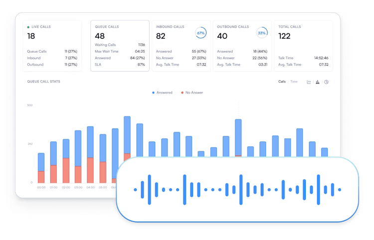 Get a clear view of your call activity with real-time dashboards, detailed SLA compliance reports, and AI-driven insights. Track agent performance, monitor call volume, and uncover patterns that help improve customer satisfaction.